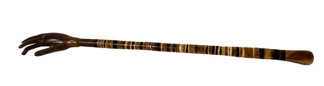 DS-4: inlayed horn back scratcher (light brown hand),c.1915 carvedhorn 15.75 x1in
