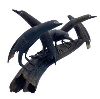 DS-88- Dark carved horn sculpture with 5 birds perched on top, c. 1915 carved horn 8 x 14.50 x 6.50 in