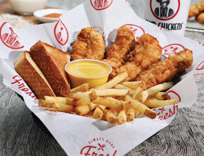 WITH ITS SOARING SUCCESS AND RAPID GROWTH, Slim Chickens is a revolutionary player in the fastcasual restaurant industry. The better-chicken brand, known for its southern comfort food and handbreaded chicken tenders, is making major strides across the U.S. and internationally as it heads into 2024. The widespread interest is attributed to the brand’s unique loyal following, adaptability to externalities, and high-touch executive team that is in tune with franchisees’ bottom line.