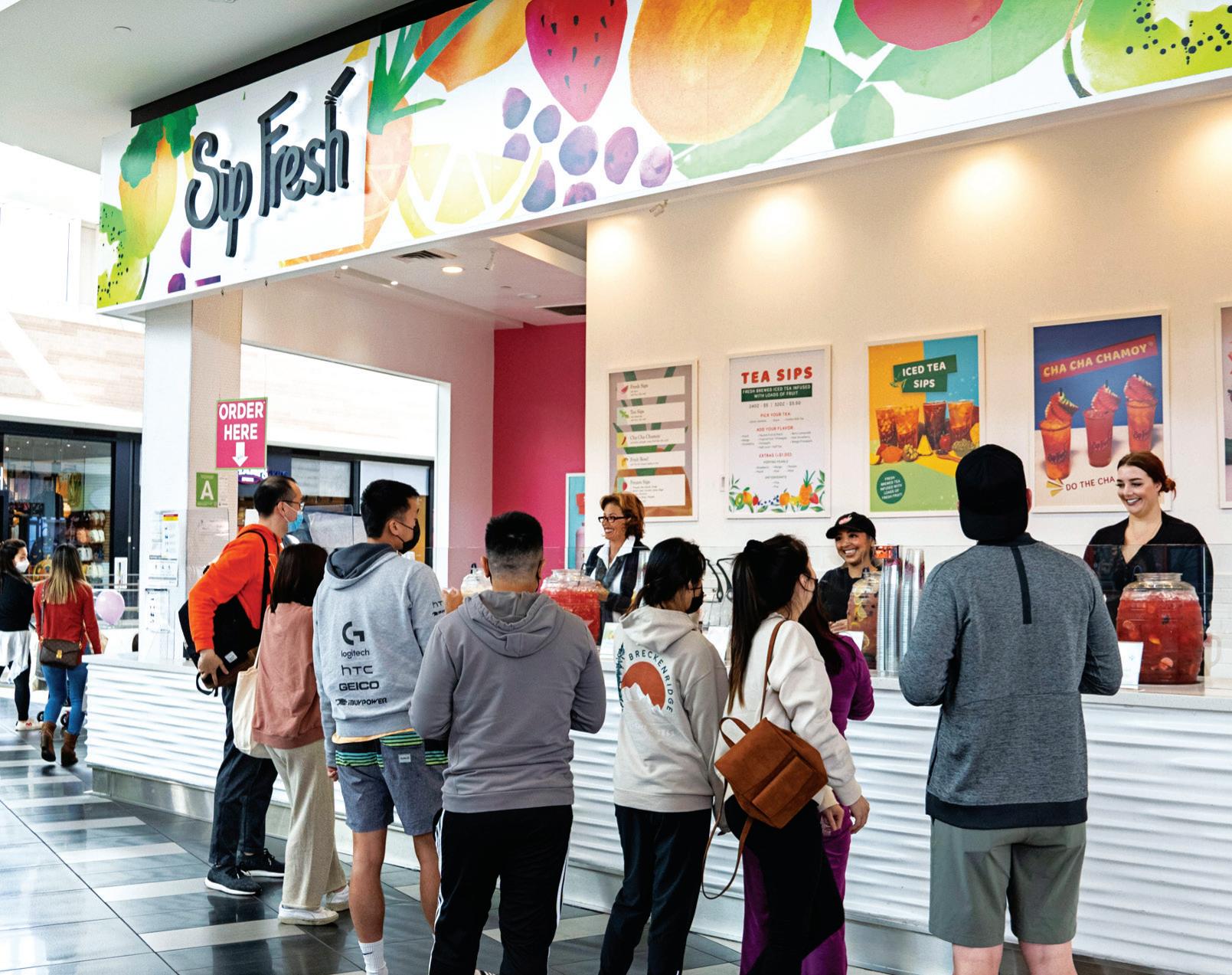 Anchored near upscale department and specialty stores, Sip Fresh joins desired retail destinations, capitalizing off of a steady flow of foot traffic in all day parts. Since the brand’s inception in 2017, it has drawn in onthe-go shoppers seeking spontaneity and excitement on their buyer’s journey. As an innovative franchise concept, Sip Fresh is becoming a beacon for Class A malls across the country. Currently, the brand has four locations in California and Arizona, with three additional stores projected to open in current states and across the Sunbelt.
