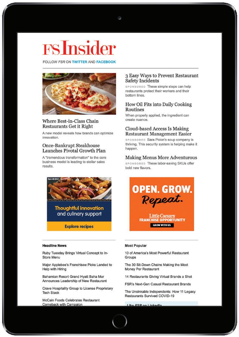 Sponsored content in this magazine is provided to the represented company for a fee. Such content is written to be informational and nonpromotional. Comments welcomed at sponsoredcontent@ fsrmagazine.com.