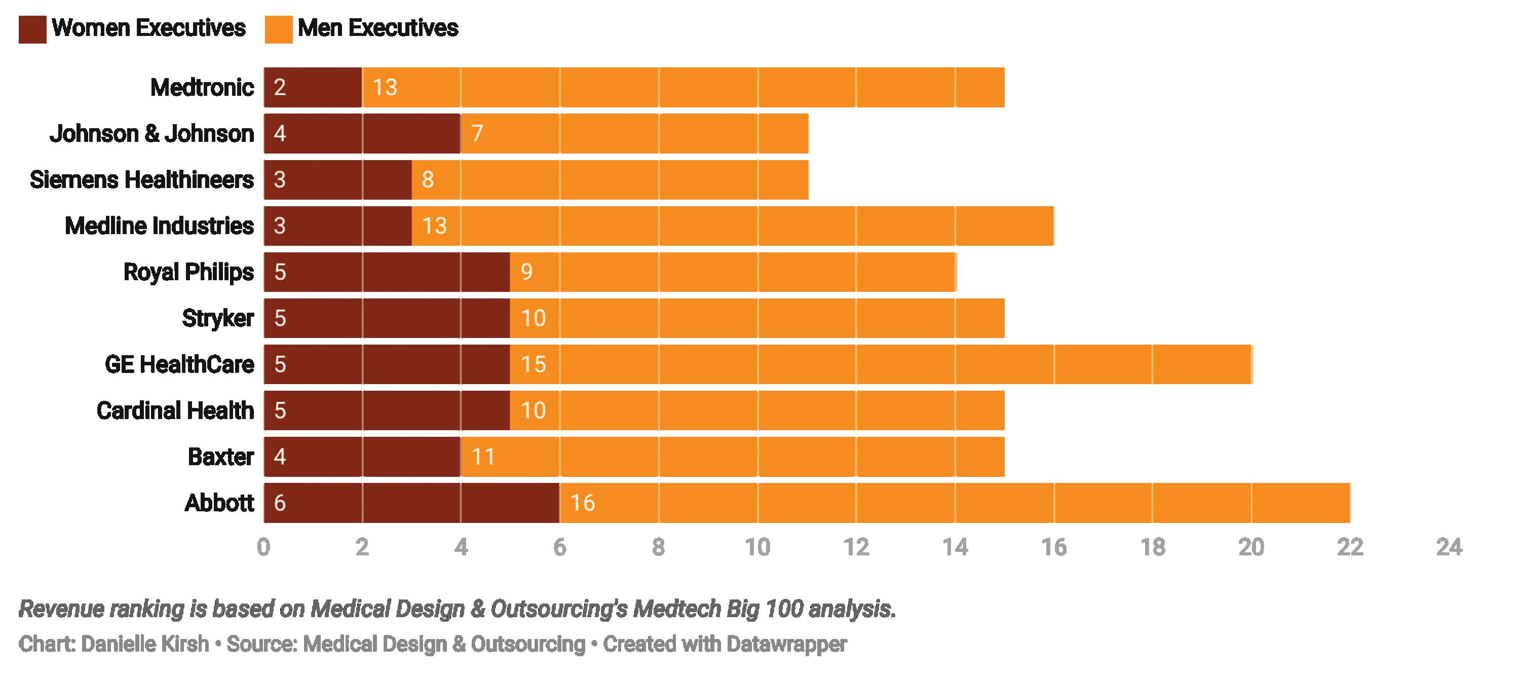The medical device industry’s efforts to achieve gender parity in top leadership have stalled.