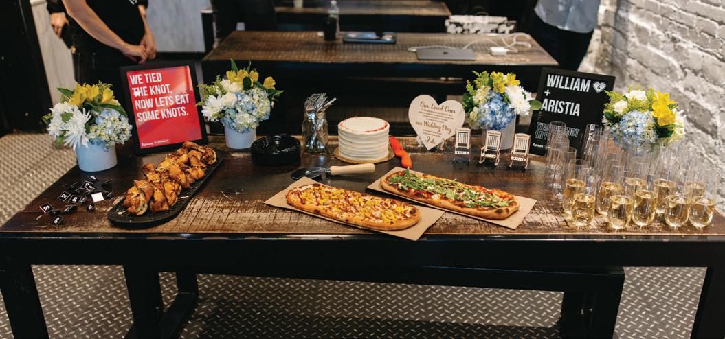 MID-MARCH MIGHT NOT SEEM LIKE the most romantic time for a wedding, but don’t tell that to &pizza, the Washington, D.C.-based chain launched in 2012. Founder Michael Lastoria presided over two Pi Day ceremonies on March 14, hitching couples who share an “irrational” love for the brand. (That’s not a slam—pi is the most celebrated irrational number in mathematics.) The blessed events took place at The Hive Rooftop at Hotel Hive in D.C., where &pizza transformed the space into an intimate wedding venue, complete with decor, dessert,