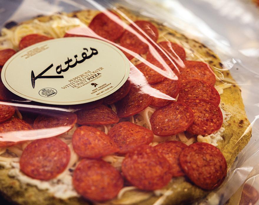 products into 800 stores prior to securing the Golden Ticket— “without a broker, without a marketing spend, without anything,” she notes. Then, in September 2024, Lee and her culinary director, Jake Sanderson, attended Walmart’s Open Call pitch day in Bentonville, Arkansas. On offer was the full line of Katie’s frozen pizzas and pasta bakes, plus her sauces (arrabbiata, marinara and lemon cream); barrelaged balsamic and EVOO; and slowdried pastas like bucatini and fiori.