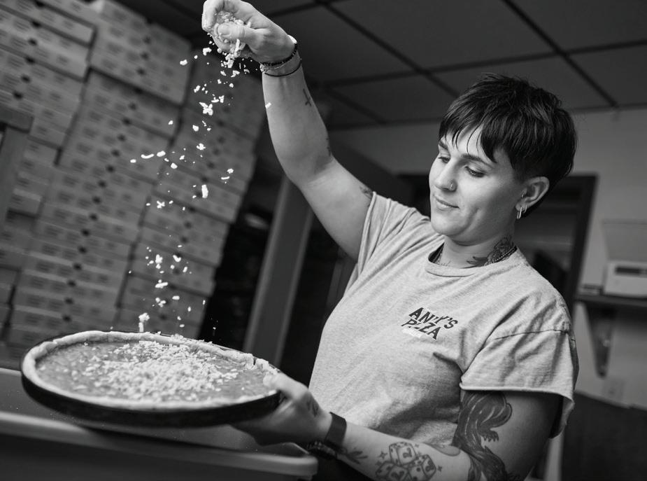 style—chin up, mind open, flour flying. “I didn’t really have fear. I wanted to go full steam ahead into all pizza—even if it meant me failing. I knew the only way I was going to improve was by doing it.”