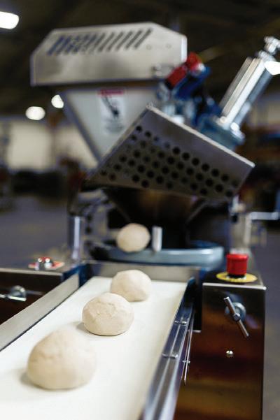 The hydration is directly proportional to how large your air cells can be, but not how large they will be—that’s up to the pizza maker. For example, if you take a highhydration dough and put it through the sheeter, you’re not going to get a lot of air. The water allows the gluten to stretch more, and the water also turns to steam in the heat of the oven. So the more steam you have inside that dough, the more it’s going to expand those air cells.