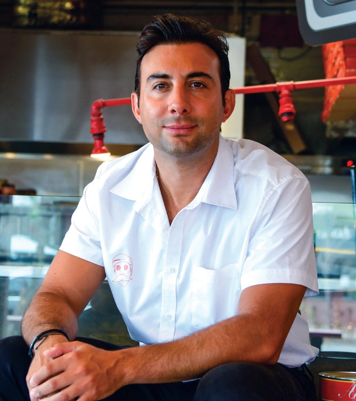 Fernandez’s mother helped him buy that first store, and both of his parents, along with his brother, pitched in to get it off the ground. Fernandez toured the New York pizza scene and taught himself the style’s particulars. Meanwhile, he set out to build a captivating, uniquely funky brand through his digital channels. For that, he needed a memorable character that would stop the scroll. Hence, the outlandish Mr. Moto was born. He’s a far cry from your runof-the-mill pizzeria mascot.