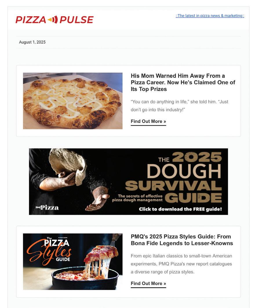 • Hot-from-the-oven pizza industry news delivered three times a week (Mondays, Wednesdays and Fridays)