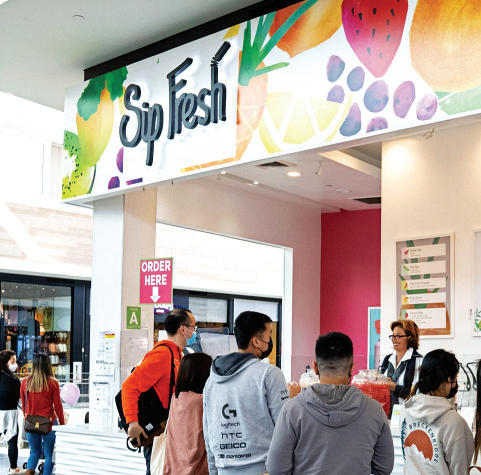 Anchored near upscale department and specialty stores, Sip Fresh joins desired retail destinations, capitalizing off of a steady flow of foot traffic in all day parts. Since the brand’s inception in 2017, it has drawn in onthe-go shoppers seeking spontaneity and excitement on their buyer’s journey. As an innovative franchise concept, Sip Fresh is becoming a beacon for Class A malls across the country. Currently, the brand has four locations in California and Arizona, with three additional stores projected to open in current states and across the Sunbelt.
