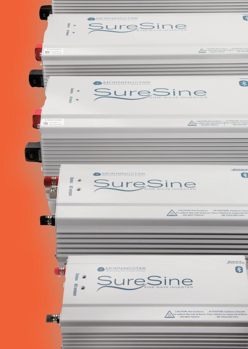 With six power classes ranging from 150 to 2500 Watts offering models with 120, 127 or 230V output and 12, 24 or 48V DC input options, there’s a Morningstar SureSine perfect for your next project