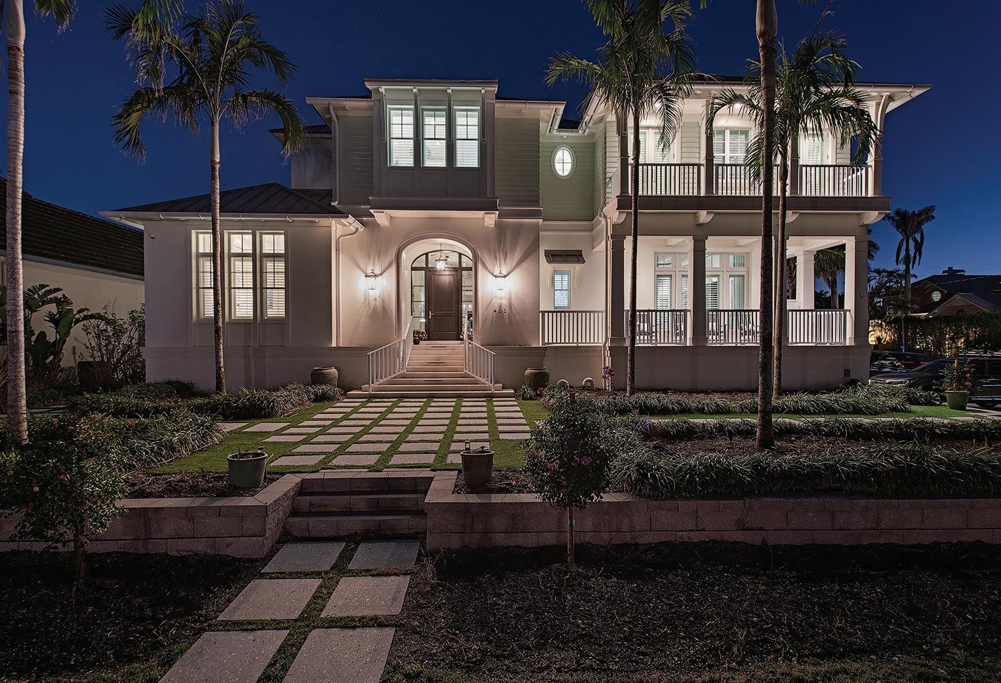 194 4th Ave N - Only four houses from Naples’ pristine beaches. Old-Florida architecture, nestled on an oversized homesite and boasts a metal roof, front porch, wood floors, vaulted beamed ceilings, pool and spa, outdoor kitchen, and a three-car garage.