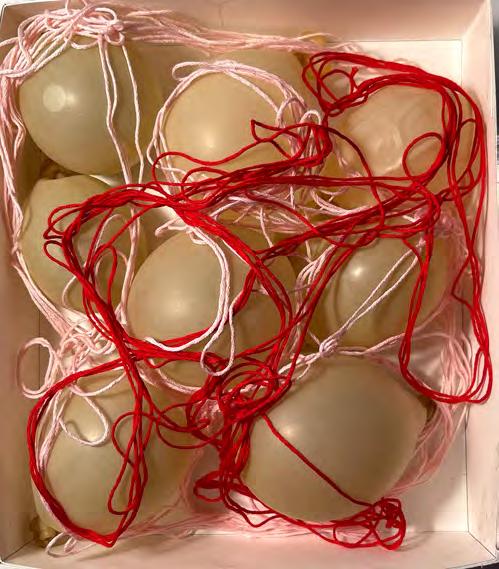 The balloon mimics the bloated ball during the mid-phase of pregnancy. Many mothers suffer from edema and the feeling of carrying heavy-weight water balls.