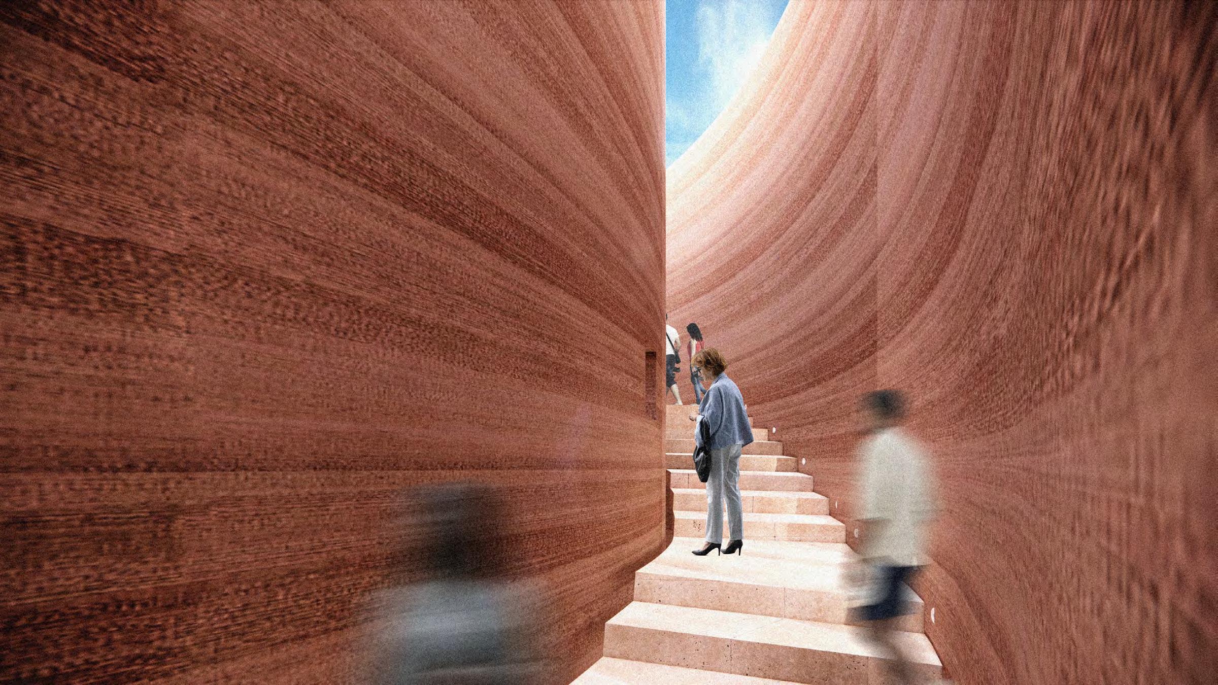 The design blends the inside and outside to create a journey that encourages introspection. By doing so, visitors are able to gain a deeper understanding of the topic being discussed by reflecting inwardly.