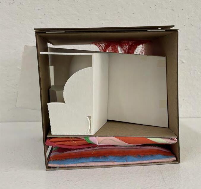 Another focus of this model is “framing.” The exterior, or the box, has small cutouts on each face for people to peek inside. The image one perceives is completely different before and after the box is opened. The only space visible without opening the box is the white tunnel, which is the only gallery space in this model, while the others are all spaces for experiencing.