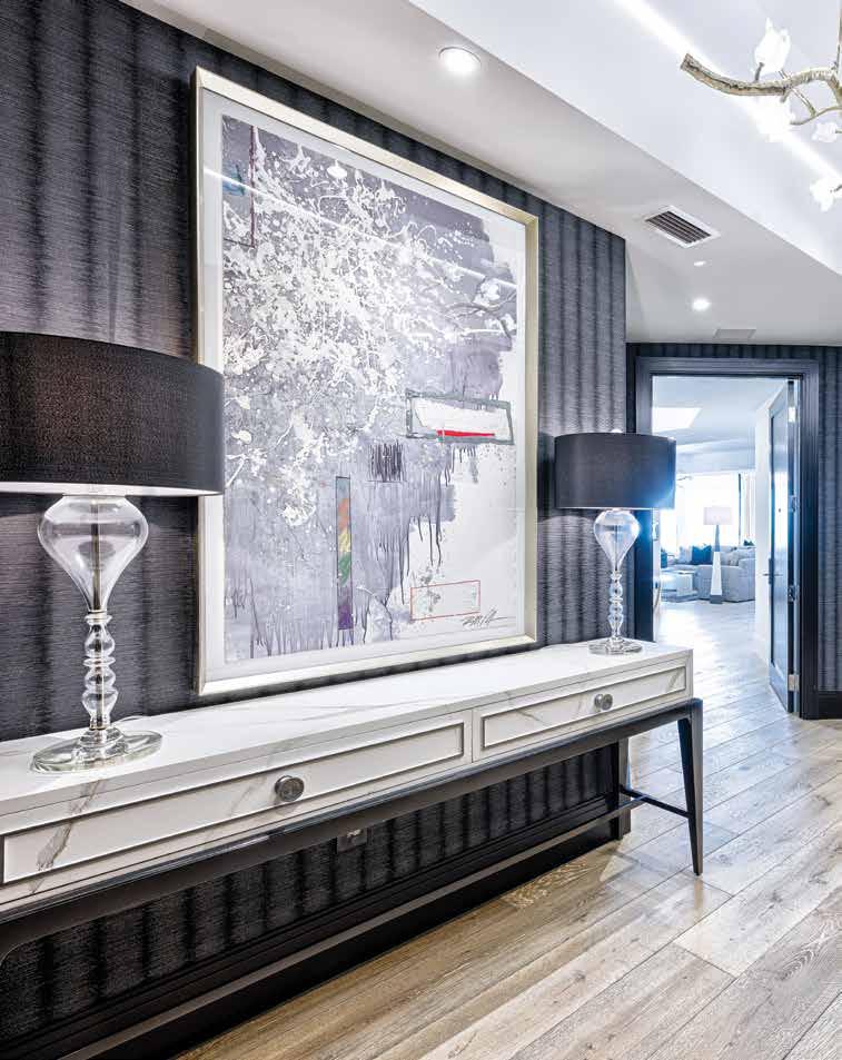 Southwest Florida is home to stretches of white-sandy beaches, lush, impeccable landscaping, a host of attractions like botanical gardens, zoos, art galleries, shopping and dining, as well as an easy, tropical lifestyle. Aqualane Shores, one of Naples’ most prestigious suburban neighborhoods, offers a luxurious selection of homes, like this elegant estate which overlooks the Gulf of Mexico. The community, situated between Old Naples and Port Royal, is within walking distance of the beach, shops, and dining in downtown Naples. The majority of the 370 single family homes located here feature private docks on deep water canals leading to Naples Bay and the Gulf of Mexico—and this luxurious new build, new construction home by Waterside Builders is on a canal with easy boating access to Naples Bay, and is ready for a customized dock. Currently on the market, Celine and Chris Wells, of Douglas Elliman, are the listing agents representing this beautiful home designed by Stofft Cooney Architects. Windham Studio, Inc. took care of the landscape architect while Debra Lee Yelner of DLY Design served as the interior designer for the home’s stunning interior, working with the developer to make their vision for the home reality. “The developer wanted a unique interior with sophistication and comfort, that brings together the layout and appointments for easy living, “ explained Debra Yelner. Encompassing approximately 5,900 square feet under air with another 1,200 square feet of outdoor living space that overlooks a captivating pool and the canal, this contemporary stunner offers five-plus bedrooms, five full baths and two half-baths.