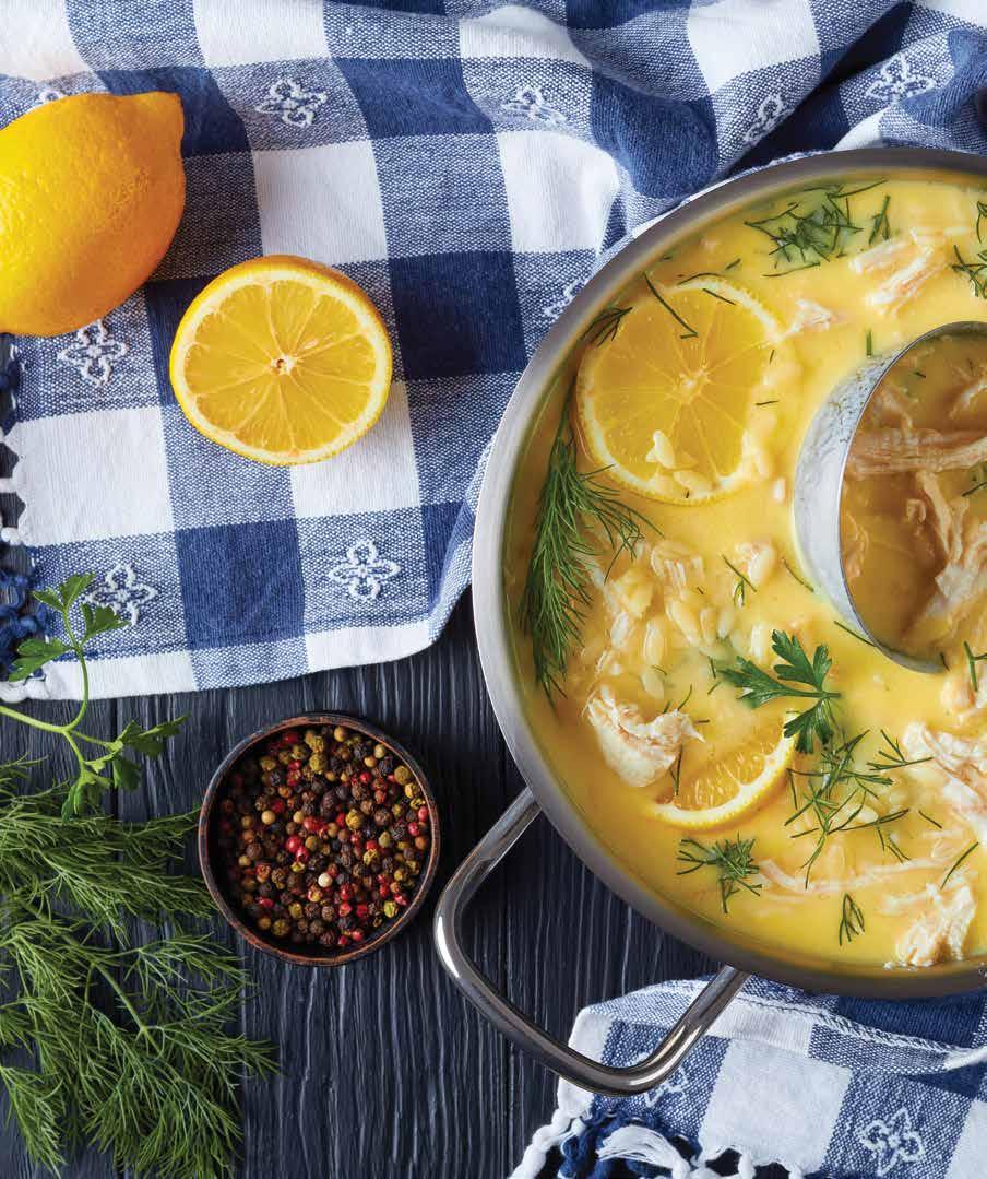 Season the avgolemono soup with salt and pepper to taste. Ladle the soup into bowls and garnish with chopped fresh parsley and lemon slices. Serve immediately, while hot.