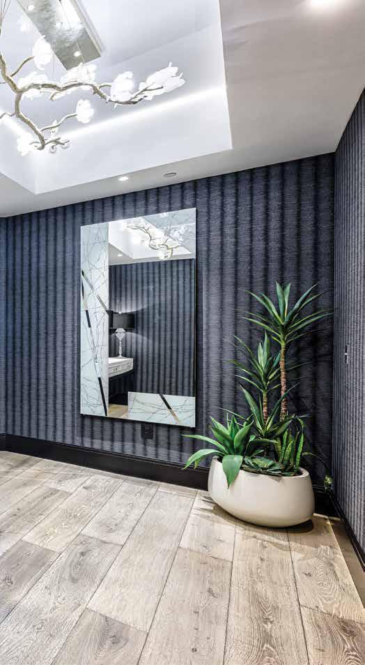 Exterior features include stucco walls, a shell stone pool deck, concrete pavers, fire pit with banquette, and full-house generator. The interior is brought to life through features like a mahogany front door, custom floating staircase, elevator, wall with leather finish, designer paint and wallpaper, custom ceiling and walls, Control 4 Home Automation, and beautiful white oak flooring. The mix of elegant design and technology makes this home really stand out in a neighborhood of great options. “I love that this home is very stylish, and finished to be different and special” says Celine Wells, one of the home’s Realtors.