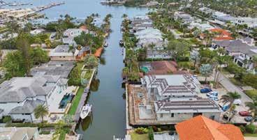 Incredible new custom construction in Aqualane Shores; moments to Naples beaches and 3rd St. S. This waterside lot showcases a fabulous 5-bedroom home of approx. 5,800 s.f. under air and approx. 1,200 s.f of outdoor living. A stunning floor plan follows a double height Foyer into a Great Room surrounded by a large open Kitchen and a unique Club Room. A sizable Owner’s Suite, second Bedroom, and Flex-Room compliment the first floor. The Great Room’s trimmed ceiling, fireplace with stone surround, and paneled walls, blend together while a built-in banquette anchors a Kitchen with natural wood cabinetry; Wolfe, Sub-Zero, and Miele appliances. The Club Room stands out with textured walls, lacquered cabinetry & designer lighting. Large windows light a floating staircase to a second floor Lounge and 3 en-suite Bedrooms. Contemporary windows throughout provide lighting to a fresh palette of crisp grey hues, clean lines and modern textures.