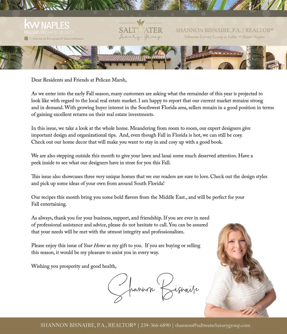 US FEATURE YOUR HOME PRODUCTS AND SERVICES We are always on the lookout for new and innovative products and services that our readers would enjoy knowing about for their fine homes. Give us a call at 239.235.3170 or email at info@yhmagazine.com to discuss how effective content marketing can be for your company. Your Home Magazine® is sent to you courtesy of the real estate professional(s) that specialize in your neighborhood. If you’d