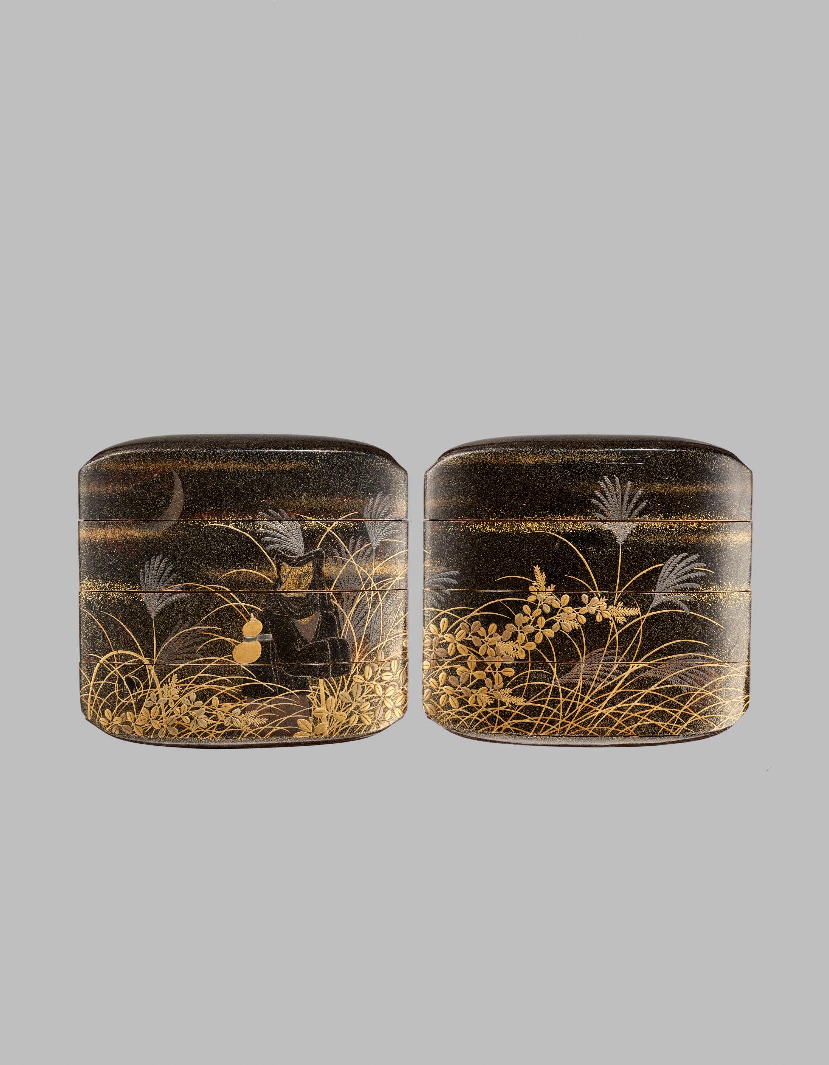 A FINE WOOD TWO-CASE INRO DEPICTING HO-O BIRDS