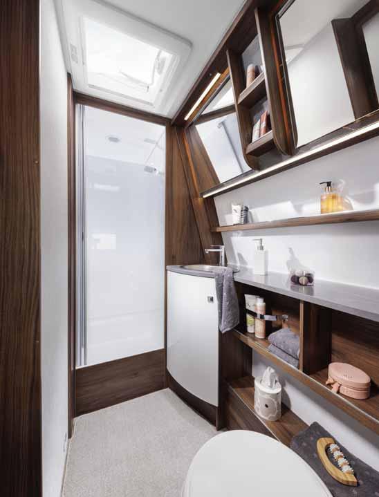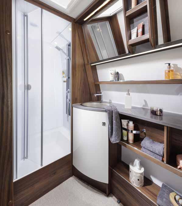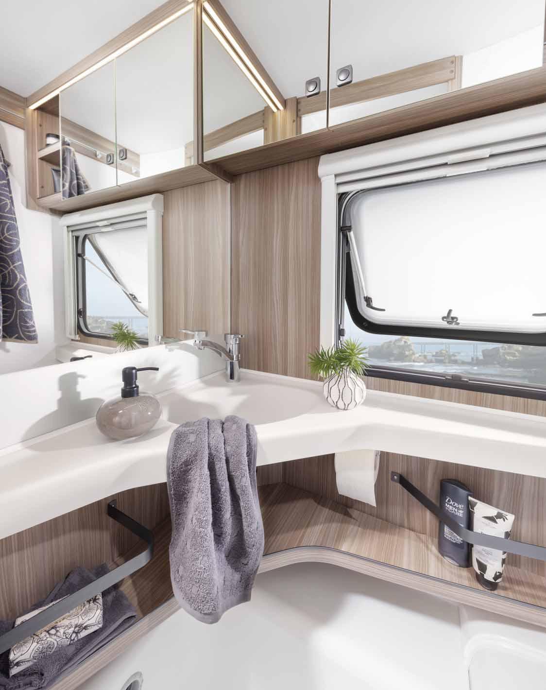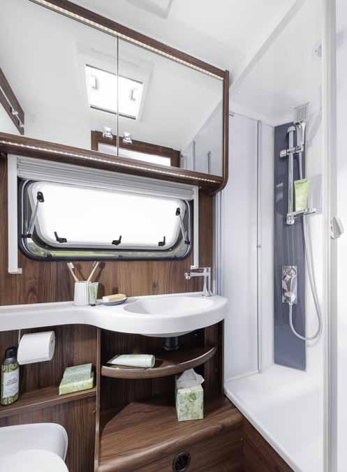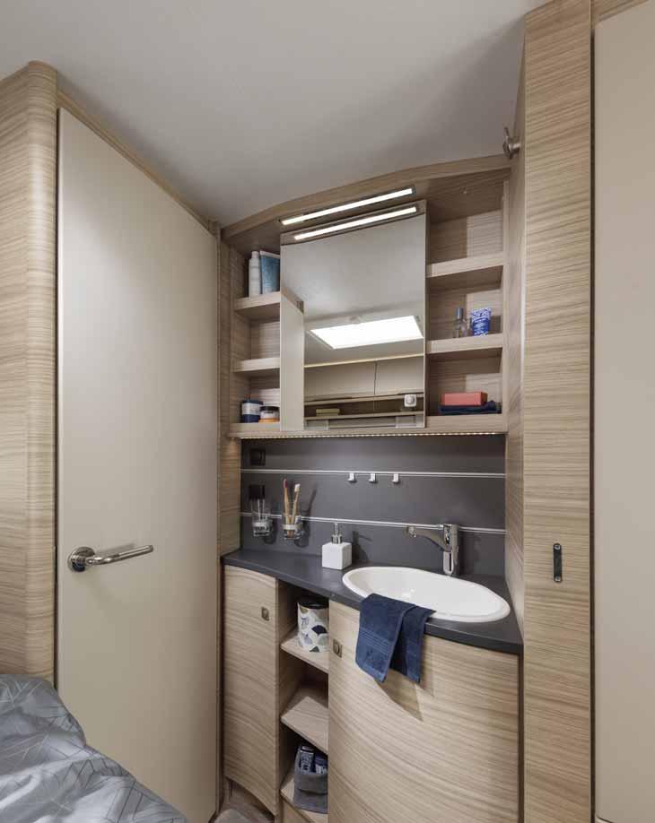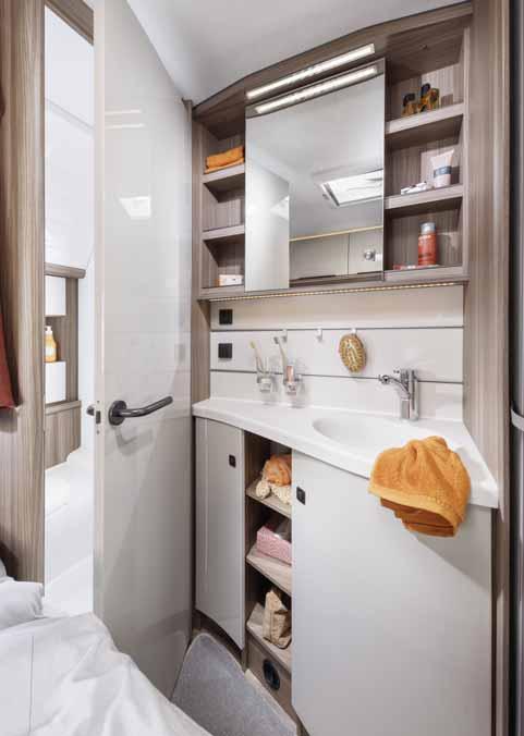 • Central washrooms* with large wall units, generous shelves under the sink and an illuminated mirror