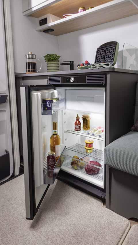 • Absorption refrigerator (98 l when freezer compartment is removed), with interior lighting*