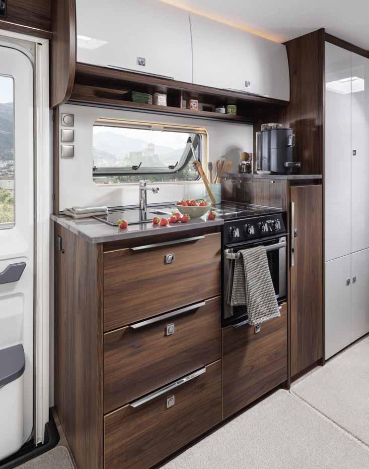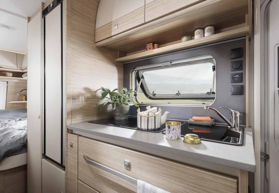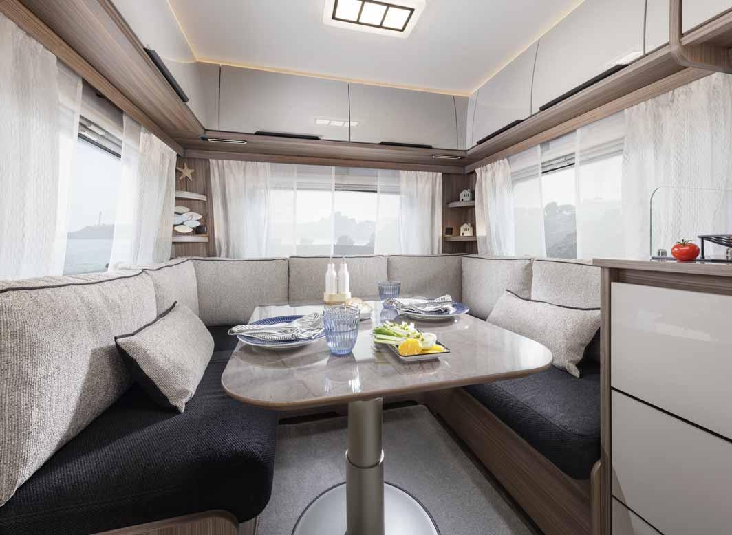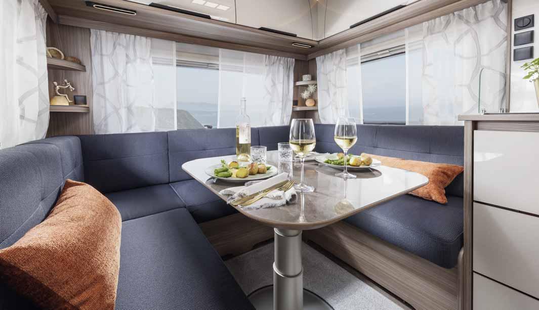 The "optional fittings and furnishings" includes all equipment parts that do not form part of the standard fittings and furnishings and are attached to the caravan ex works under the responsibility of the manufacturer. However, accessories that are installed by you or a trading partner after the caravan has been delivered from the factory are not considered optional fittings and furnishings. Information on optional fittings and furnishings that can be ordered from the factory can also be found in the configurator.
