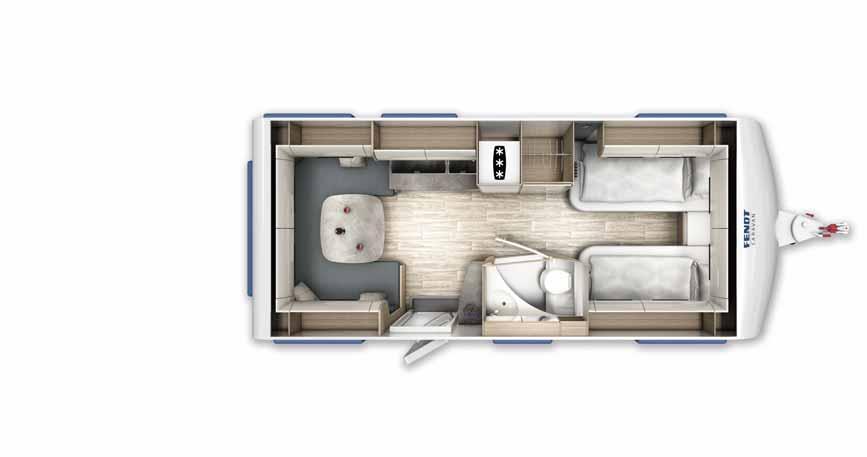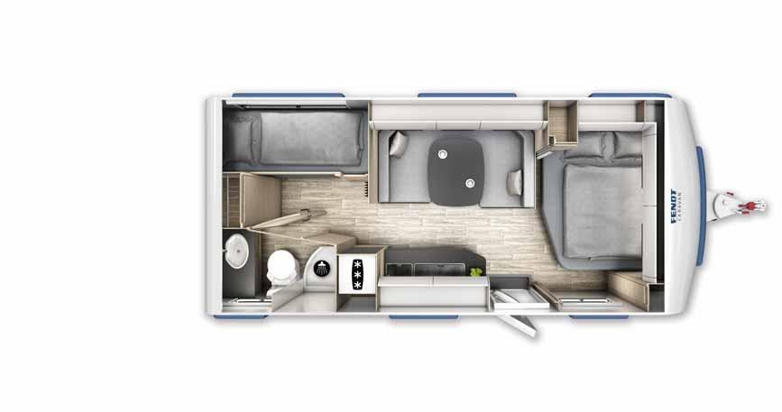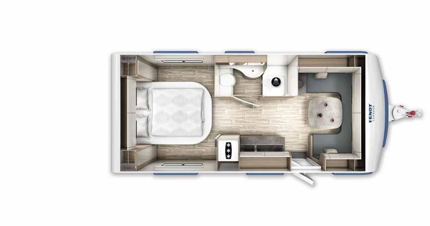 g)Additional weight variants are possible by installing a new chassis – your Fendt Caravan dealer will be happy to provide you with information