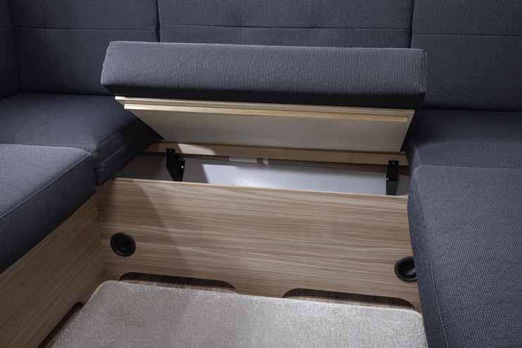 • Ventilated storage compartments with indirect ceiling lighting (LED)