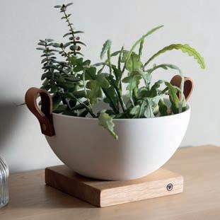 If flowers feel too ephemeral, gi a plant – and if that's not permanent enough then focus on the pot. Bergs Potter's Hoff collection features stylish contrasting pots and saucers. bergspotter.com