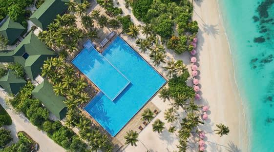 Despite the space and privacy, you’re never far from luxurious touches and thoughtful service. The resort’s wellness centre is a peaceful haven for rest and rejuvenation, with an indoor heated pool, sauna, steam room, and treatment rooms o ering everything from massages to facials. For those who like to stay active, the gym is well equipped and hosts regular classes.